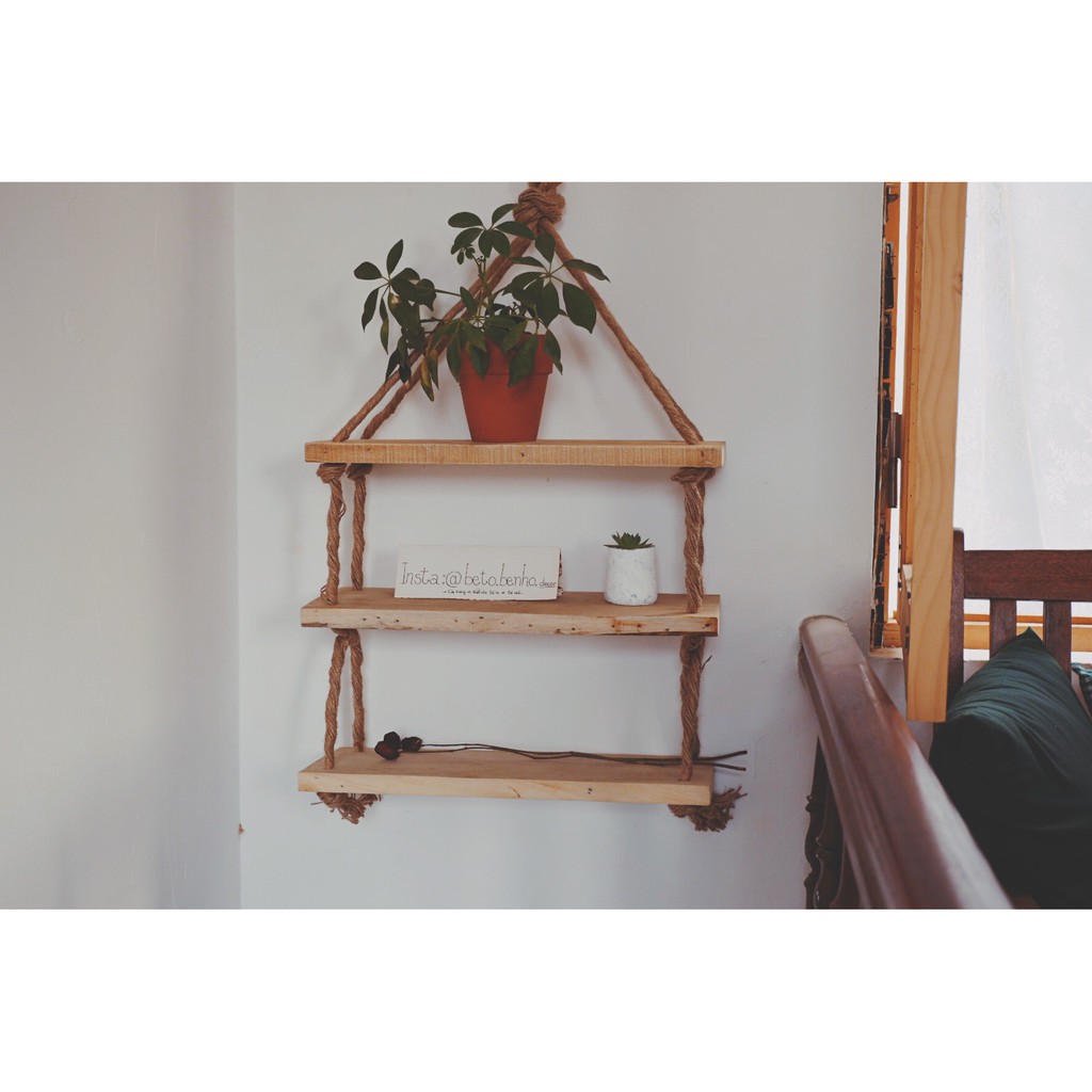 Co Sẵn Kệ Gỗ Treo Tường Trang Tri Day Thừng Boho Rustic 3 Tầng Gỗ Thong Tự Nhien Shopee Việt Nam