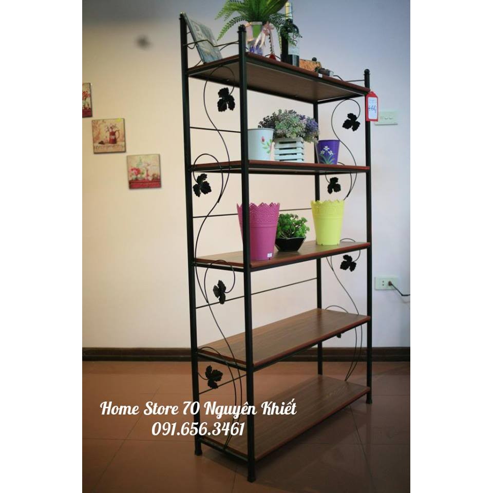 Kệ Gỗ Khung Sắt Trang Tri 5 Tầng Gia Rẻ đẹp Ks68037