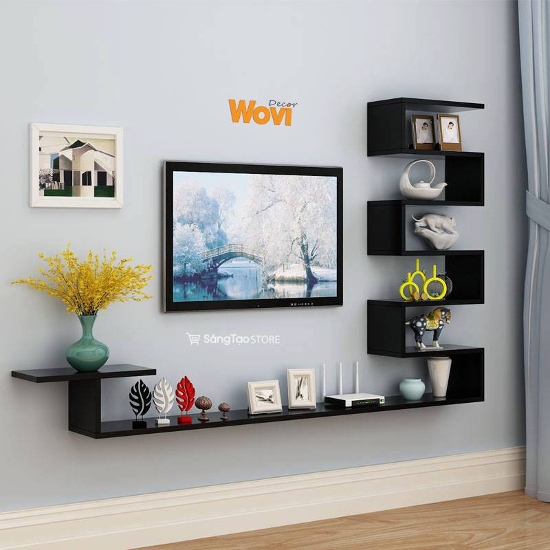 Kệ trang trí phòng khách. Kệ gỗ trang trí phòng khách là giải pháp trang trí phòng khách ấn tượng và hiện đại hơn kệ gỗ treo tường phòng khách biến những mảng tường trống trở nên có hồn hơn. Kệ trang trí treo tường là xu hướng trang trí nội thất đơn giản hiện đại và đang là lựa chọn hàng đầu của rất nhiều khách hàng trong những năm gần đây. Kệ sắt trang trí ngăn phòng phòng khách. Vách ngăn kẻ sọc liền kệ trang trọng thanh nhã ig495 giá trên gồm 1 vách 1 kệ 1 355 000đ 2 619 600đ 48 kệ wifi mini treo tường 2 tầng.