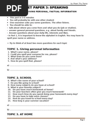 Fce Speaking Part 1 3 Pages