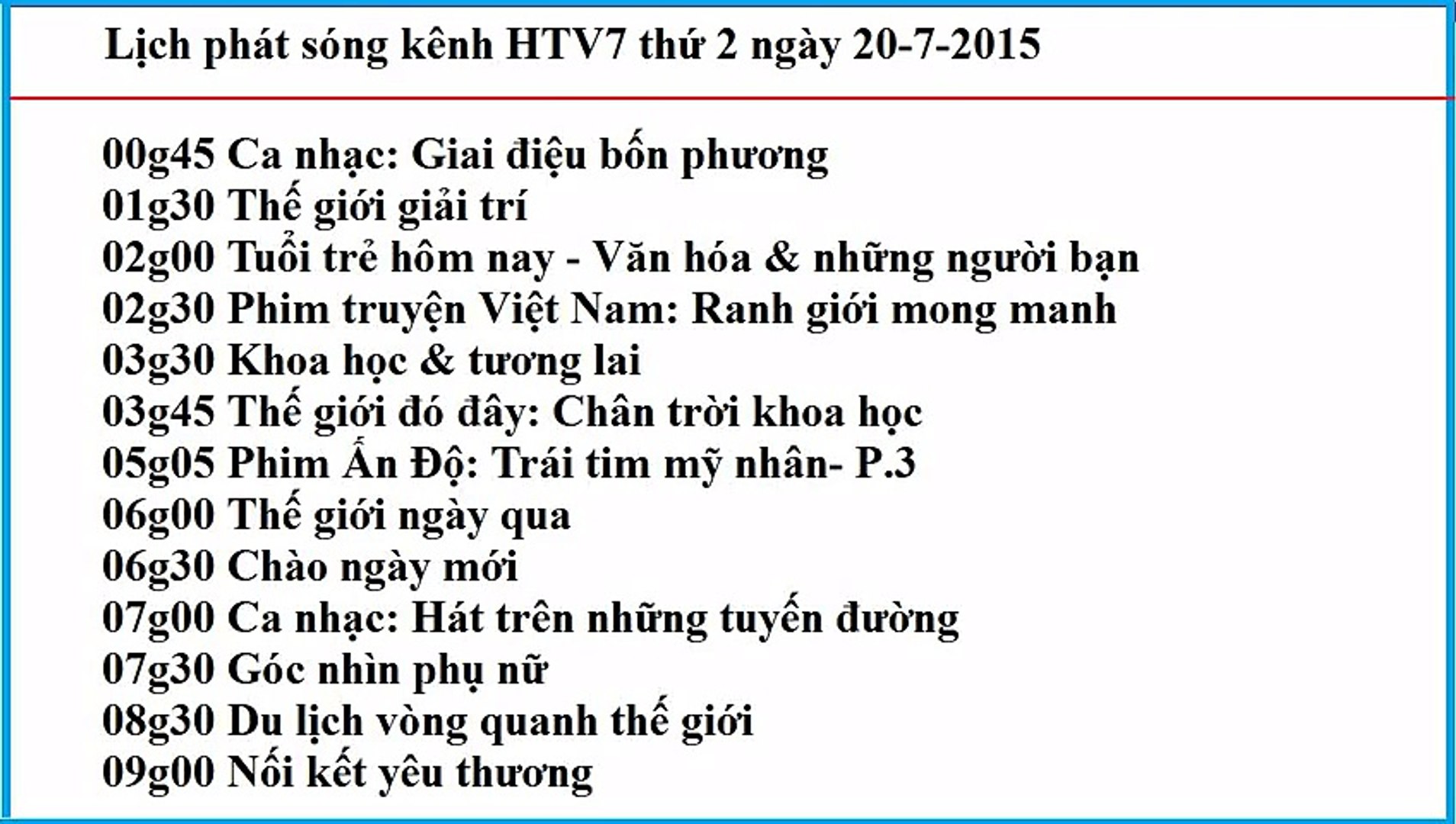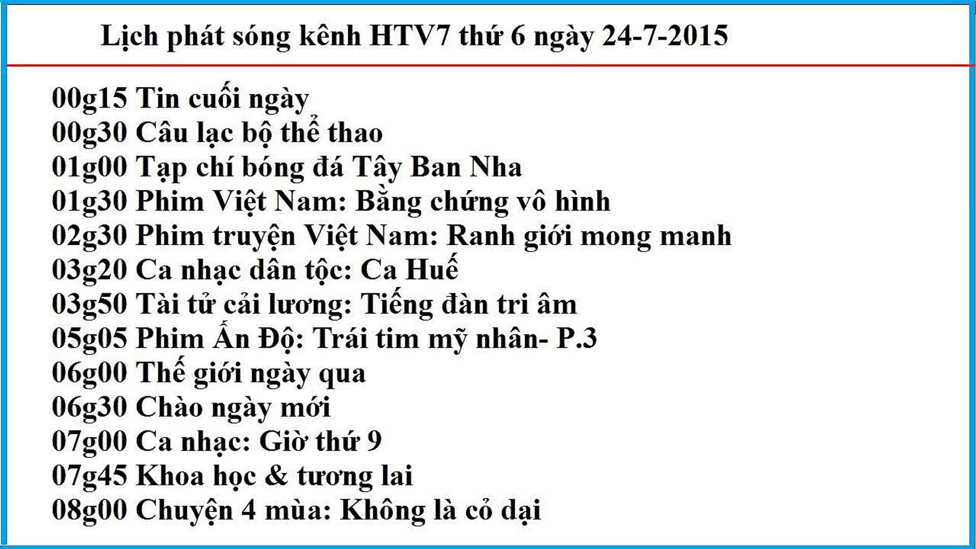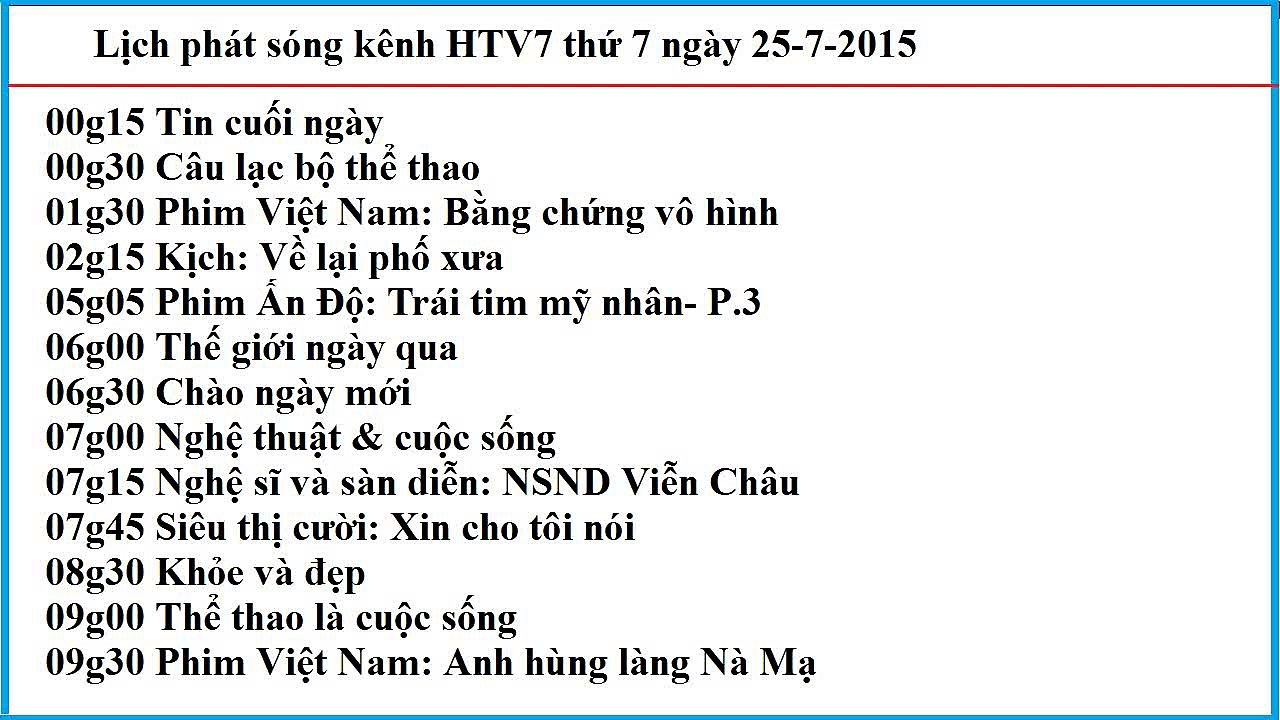 Vàng trắng 02 15 sức khỏe cho mọi người. Lichphatsongvtv3 cập nhật nhanh 24 24 lịch chiếu vtv3 thứ 2 thứ 3 thứ tư thứ năm thứ sáu thứ bảy và chủ nhật hàng tuần. Lịch phát sóng htv7 hôm nay lịch phát sóng htv7 hôm nay tối và đêm nay. Lịch phát sóng kênh htv7 hôm nay.