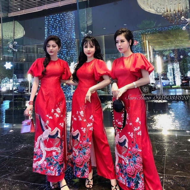 Ao Dai Cach Tan Set Bộ Ao Dai Nhung Tay Phồng Chất Facebook