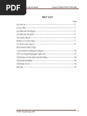 Bao Cao Thực Tập Sửa Chữa O To Tại Cong Ty Cổ Phần Tm Dv O To Phu Mẫn