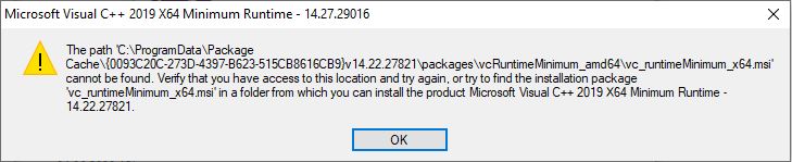 Microsoft Visual C 2015 2019 Minimum Runtime Cannot Be Found